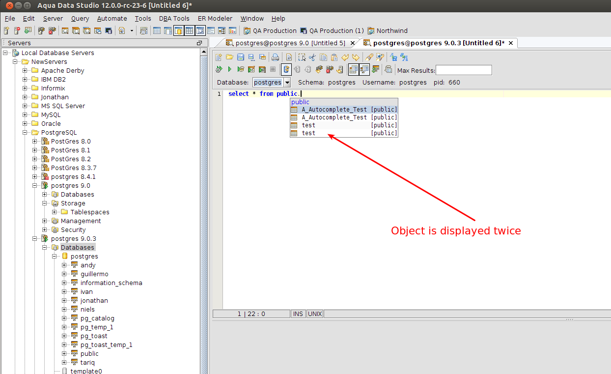 PostgreSQL: database objects are displayed twice in public schema