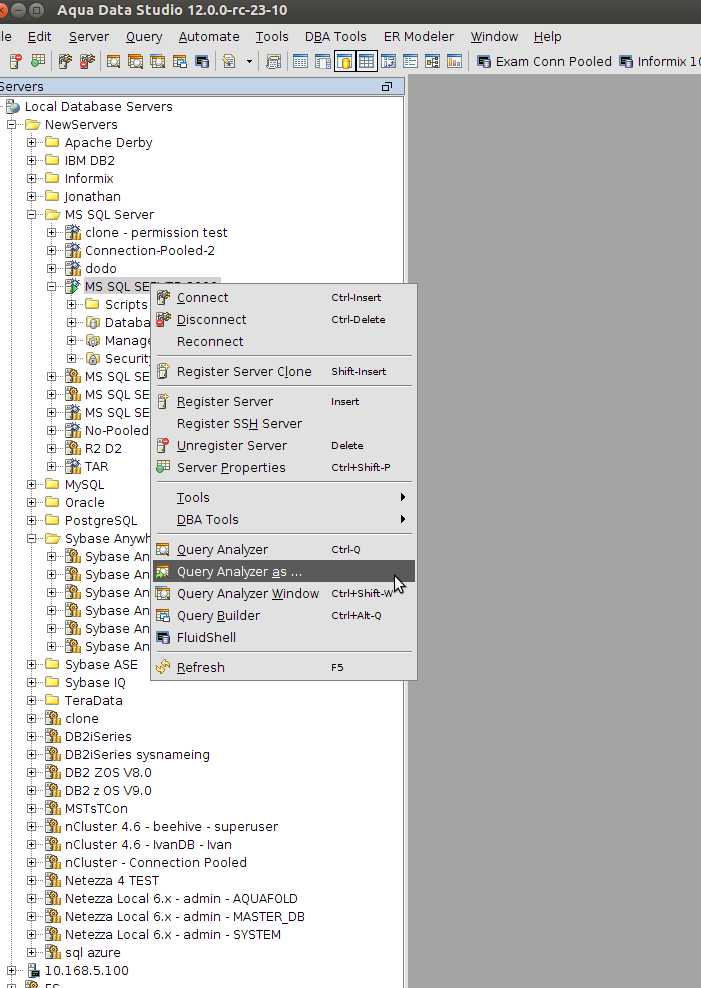 To reproduce, connect to SQL Server, right click on Server and take the option Query Analyzer As..