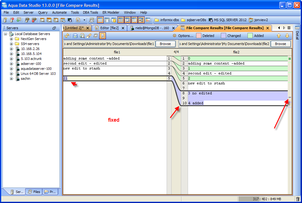 The diff window also has a feature called 'smart scrolling' which changes the selected difference automatically while you scroll.