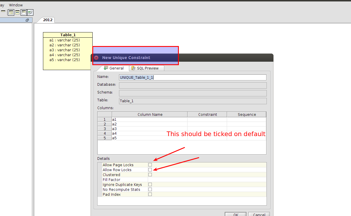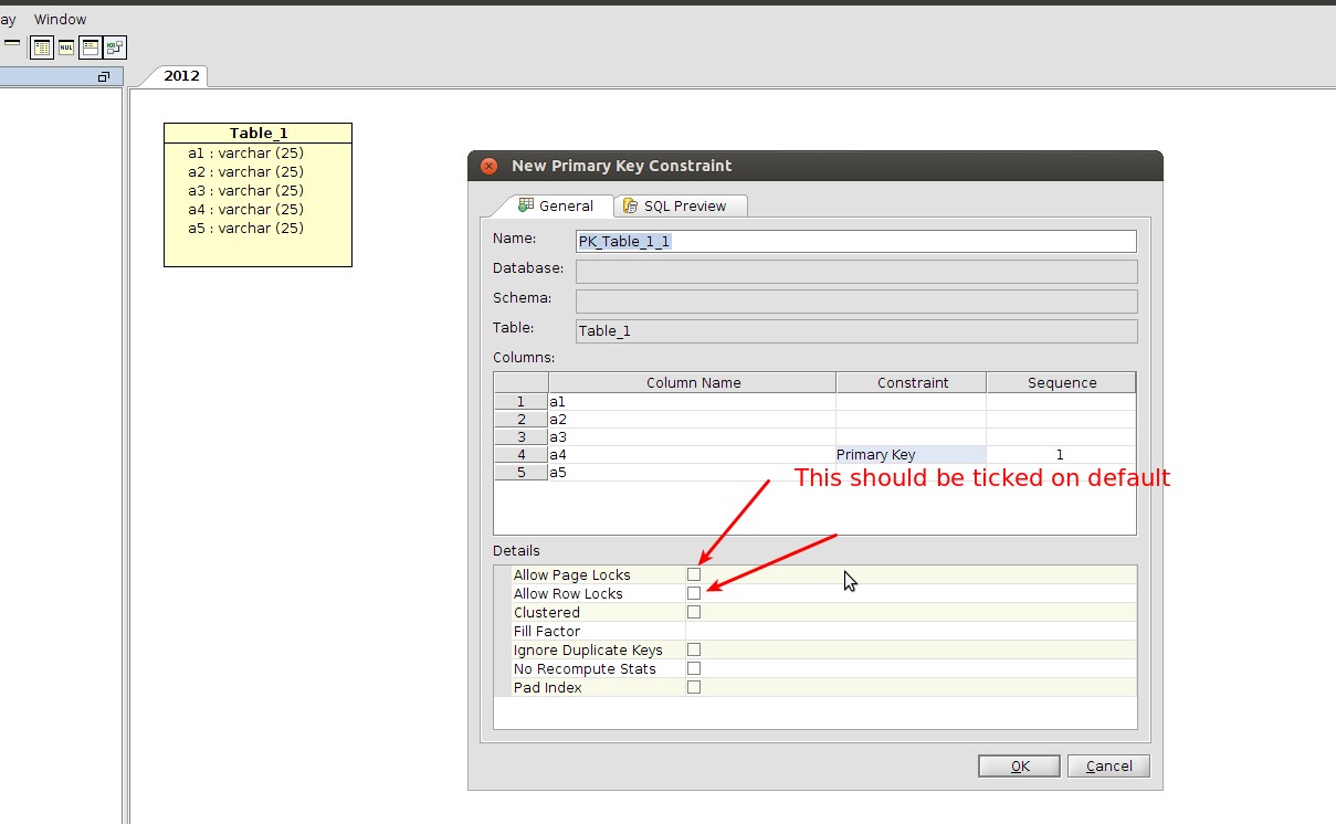 ALLOW_ROW_LOCKS=OFF and ALLOW_PAGE_LOCKS=OFF should not be the default for a new SQL Server ER Model Constraint