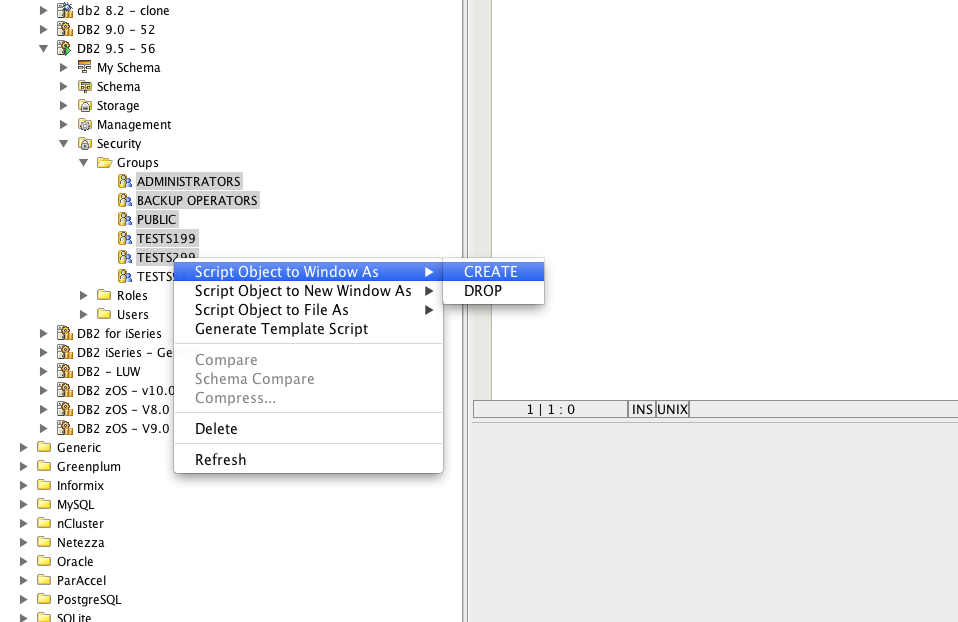 1. Connect to DB2 UDB 9.5 Server and Navigate to the Security->Groups