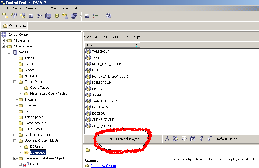 3. Compare with DB2 Control Centre and you can see that there are only 13 items present