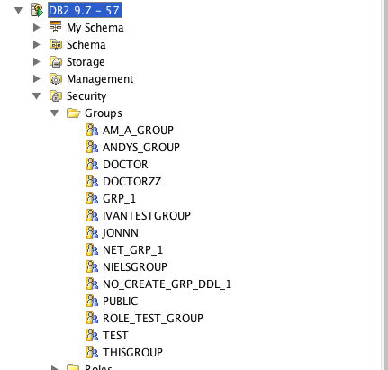 1. Connect to DB2 UDB 9.7 Server and Navigate to the Security->Groups