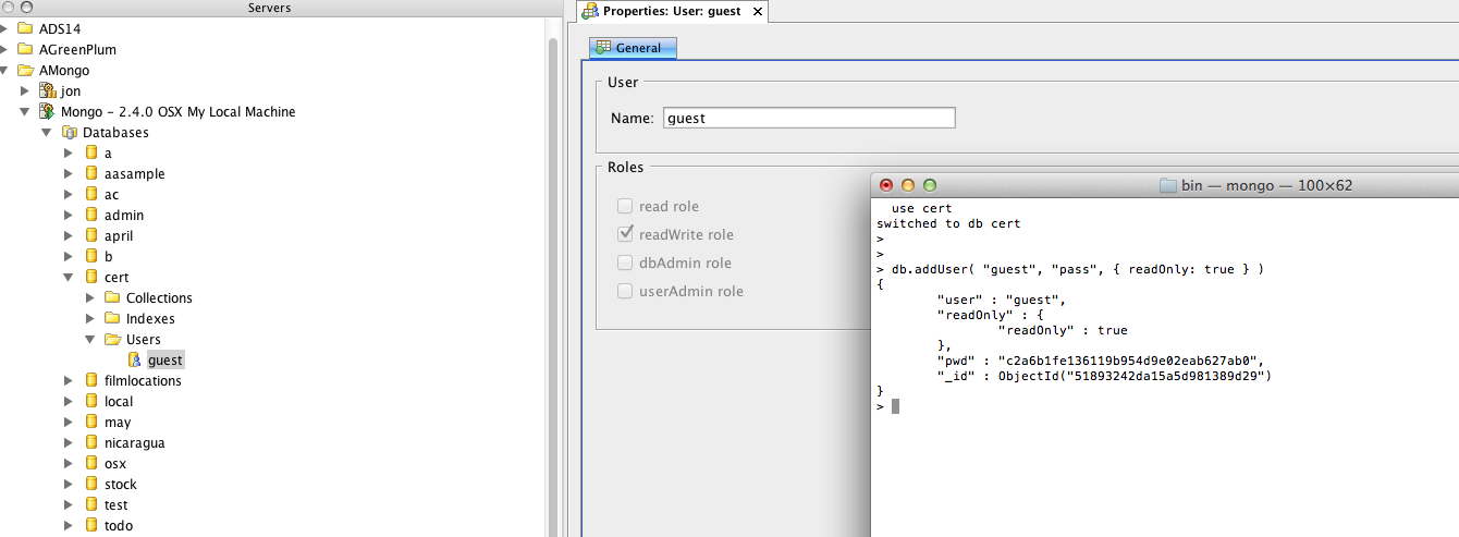2. http://docs.mongodb.org/v2.2/reference/method/db.addUser/