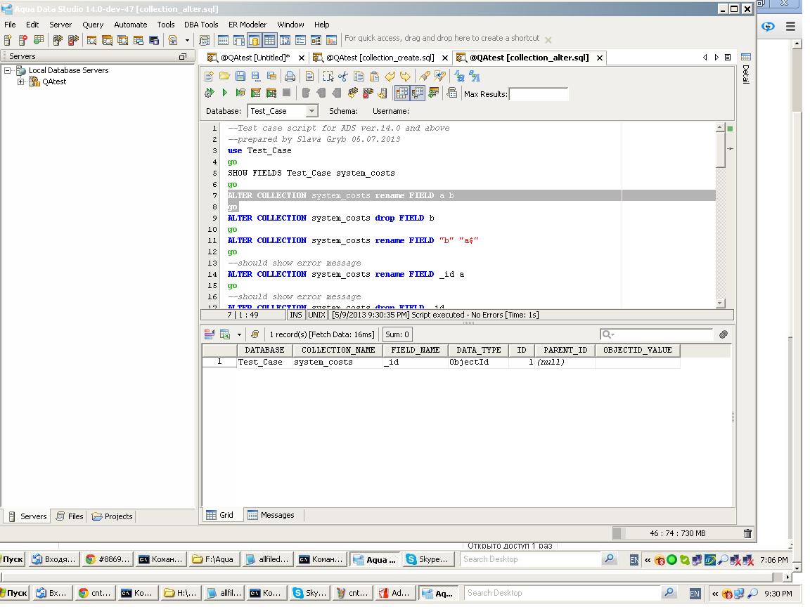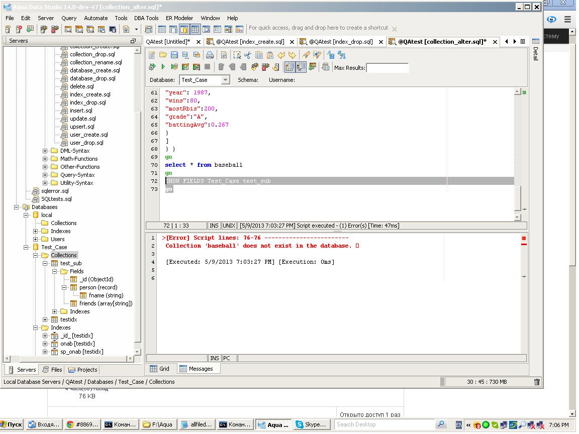 Tested on Aqua Data Studio 14.0-dev-47 Build #: 32127 on Ubuntu 12.04( Mongo DB 2.4.3) and Windows XP ( Mongo DB 2.0.9).