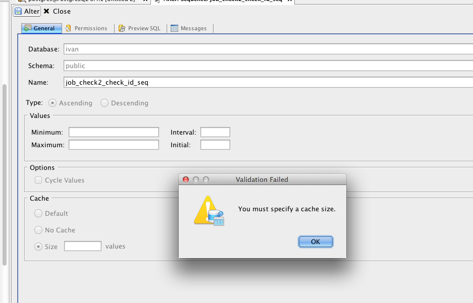 Alter Sequence giving Cache Size required in PostgreSQL 8.4