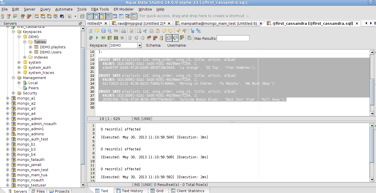 Upon successfully inserting records into a column family or table via INSERT queries, the results pane on ADS displays (Pls refer to the attached screenshot):