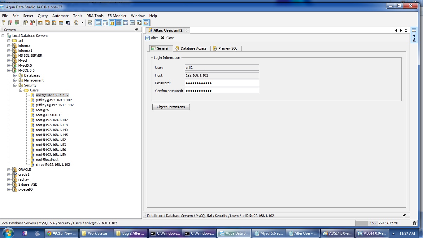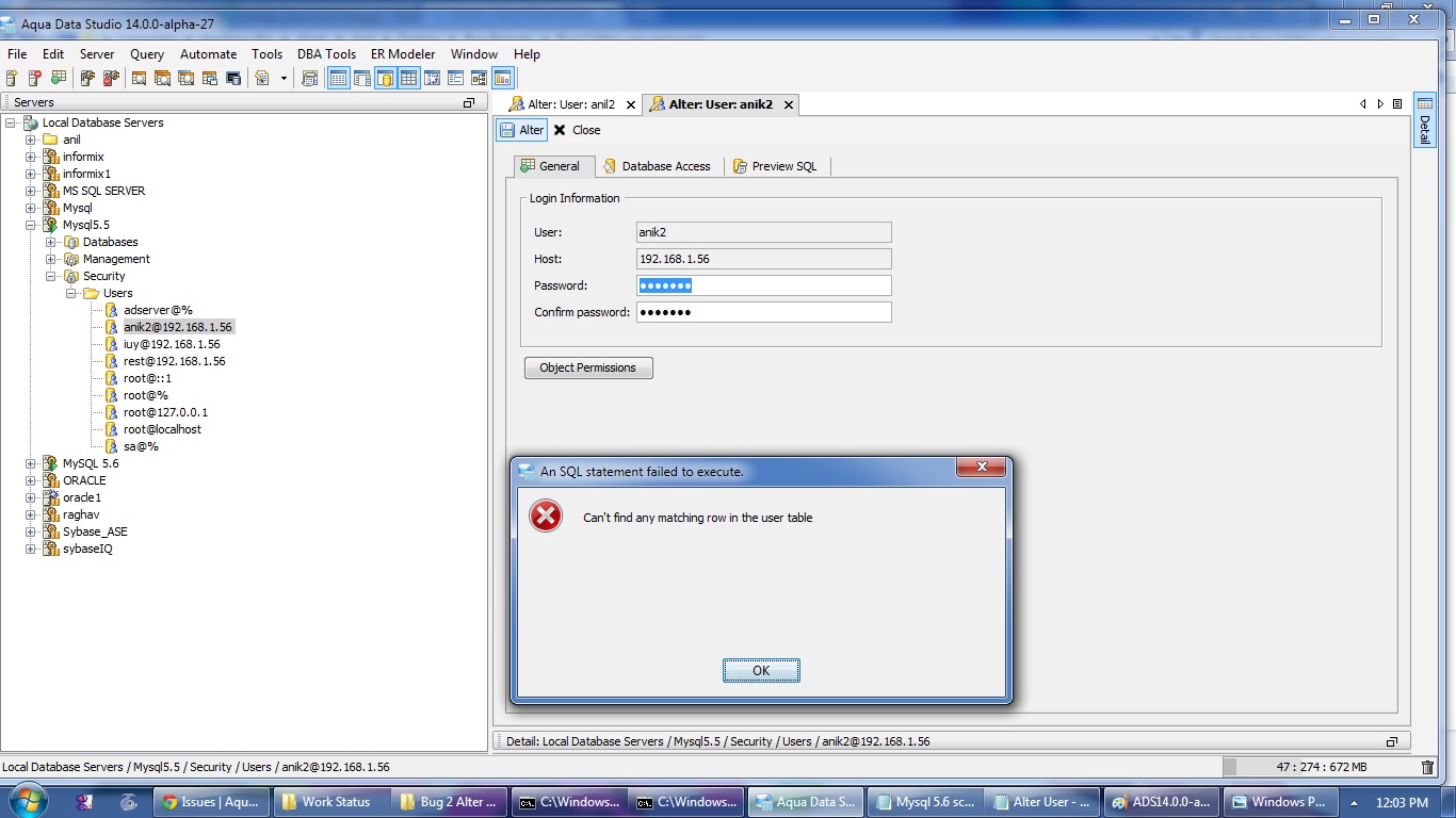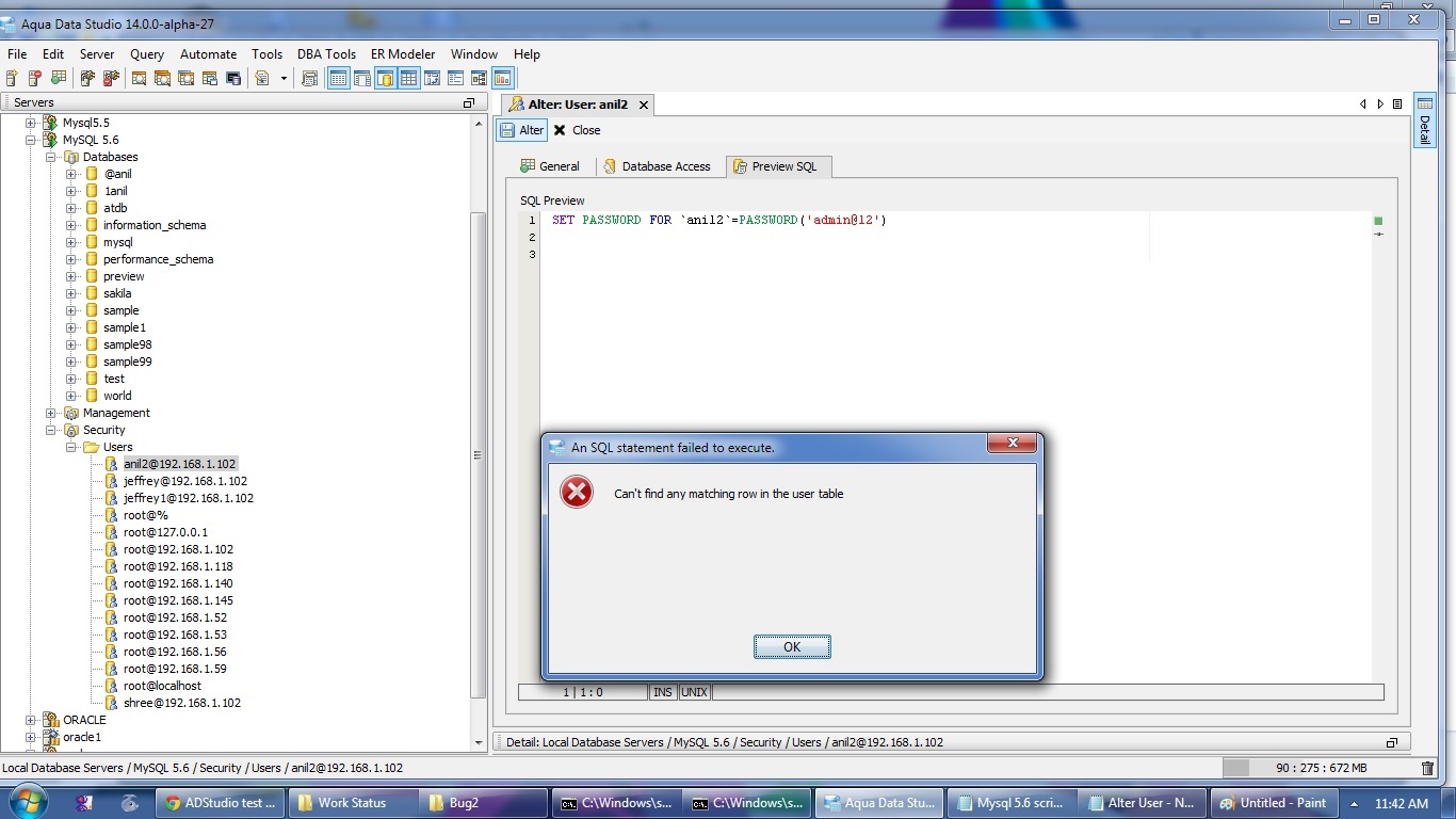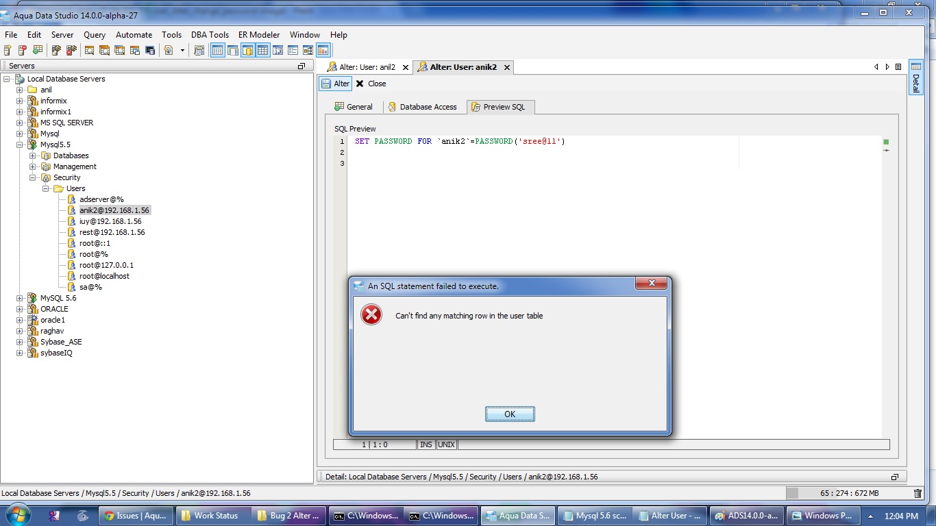 alter user for mysql was not qualifying the user name with the host info. This is now fixed and back ported to versions 13 and 12.