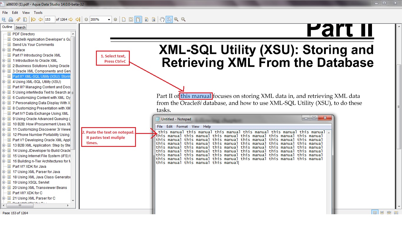 For PDF Viewer , Ctrl+C does copy selected text, but when we paste it over Notepad/ Textpad or any other editor, it paste text multiple times.