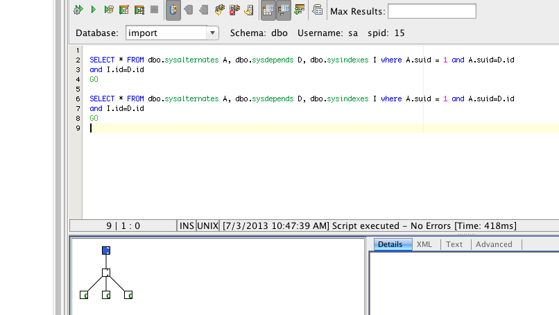 Issue #9505Sybase ASE Explain Plan - xml option - xml doc type visible at top of Details tab in Linux |