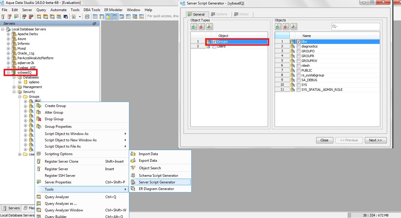 Issue #11035Wrong Object type is displayed in Sybase IQ for Groups |