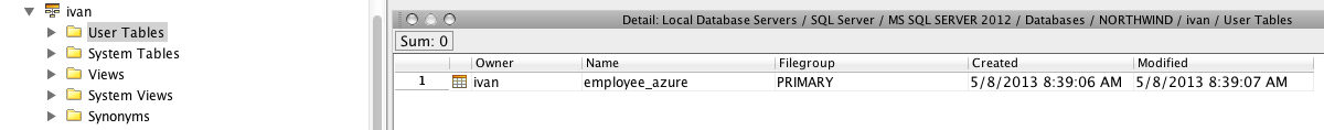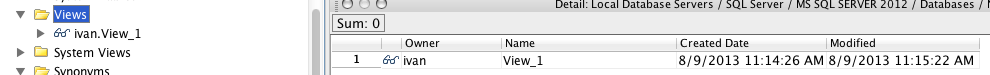 When doing a Detail Window of Objects in SQL Server, the columns presented are: Owner, Name, Filegroup, Created