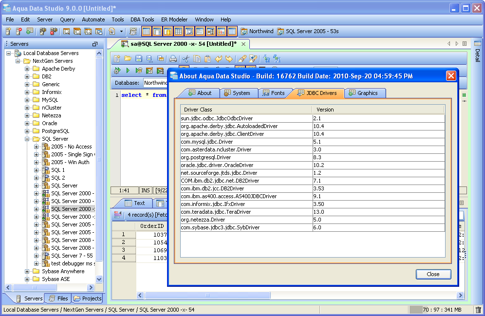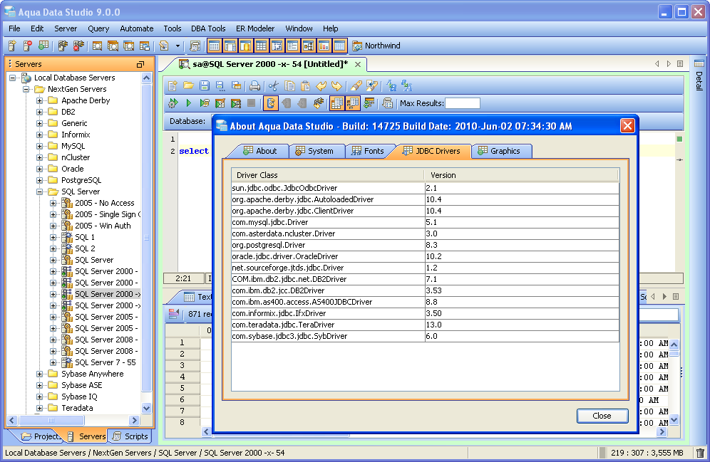JDBC Driver Usage - Aqua Data Studio uses JDBC drivers to make database connections to the appropriate database. By default, Aqua Data Studio comes packaged with an appropriate JDBC driver for all supported databases except Teradata and DB2 z/OS (these may be downloaded directly from the vendor). The included drivers work for most database versions and setups. In specific configurations you may be required to update the JDBC driver in your Aqua Data Studio installation with the latest driver from the database vendor. Below is a list of databases, the corresponding issues that may arise and the appropriate action to take to resolve the issue. Each database vendor and version JDBC Driver is discussed on its own page: