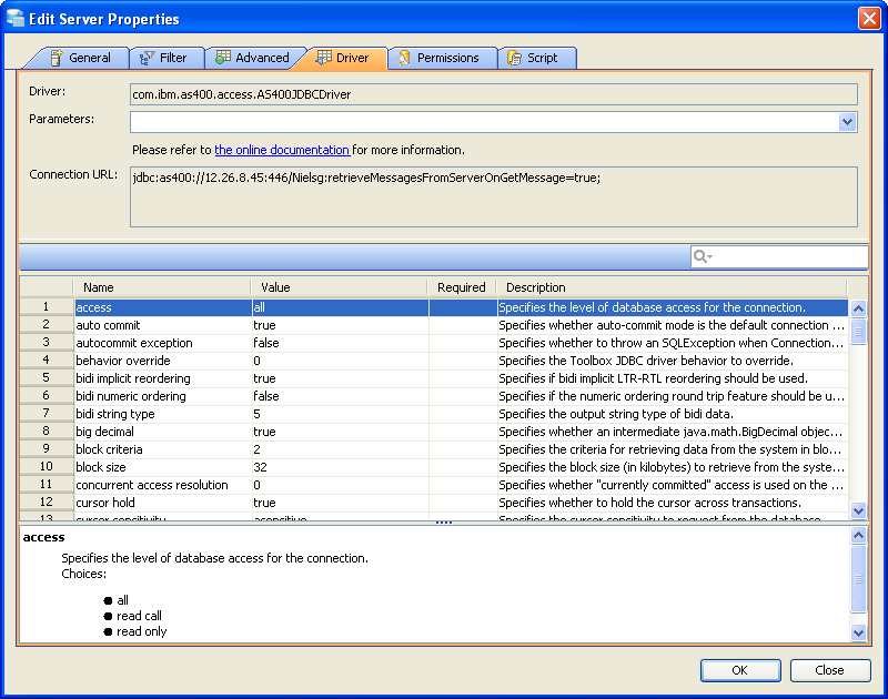 Using Driver Properties (Driver Tab) Edit the Drivers Properties to use Driver Parameters in Aqua Data Studio: