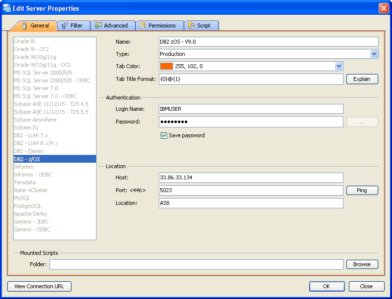 Register DB2 zOS Server - Before connecting to your server, make sure you have the appropriate driver for your DB2 version and fixpack. Tab Coloring To Identify Server Environments, whether it is a Production, Development or Test, use Tab Coloring feature :