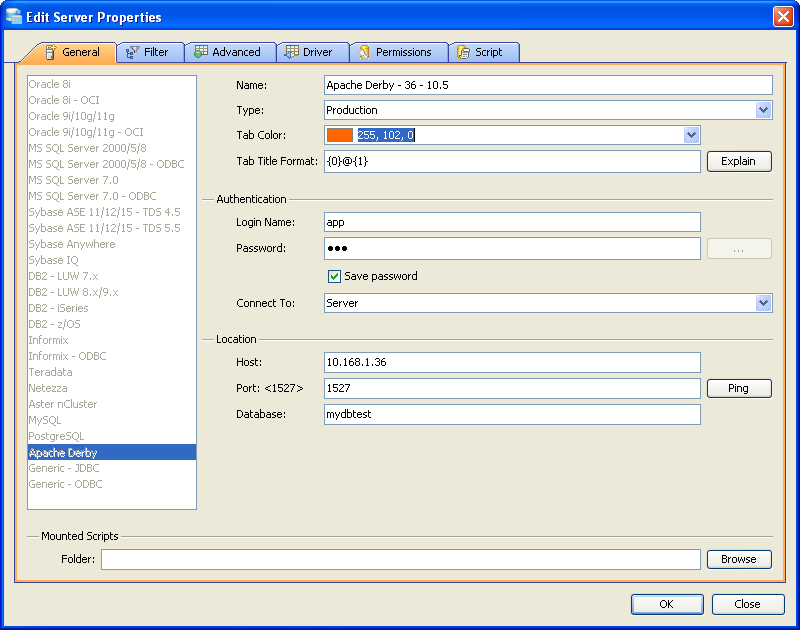 Register Apache Derby - Apache Derby registrations should be straight forward. Tab Coloring To Identify Server Environments, whether it is a Production, Development or Test, use Tab Coloring feature :