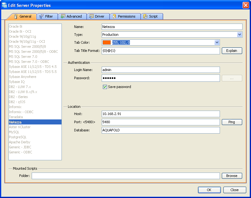 Register Netezza Server - registrations should be straight forward. Tab Coloring To Identify Server Environments, whether it is a Production, Development or Test, use Tab Coloring feature :