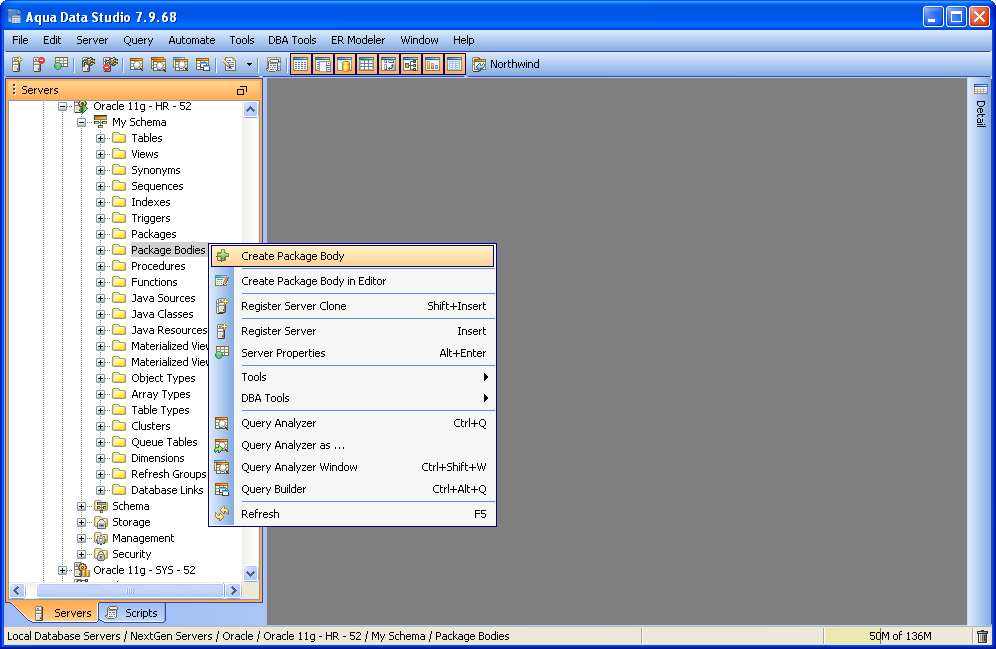 Aqua Data Studio can access and edit Procedures, Functions and Packages through the Schema Browser. Stored Procedures are subroutines stored in a database's dictionary and are often used for data validation and access control. They collect logic usually spread across several statements in complex actions for access from a single call. Functions are blocks of code to perform a series of actions used to extend the functionality of a database server. User defined functions are defined with CREATE FUNCTION in SQL statements. They can be used for converting and evaluating data or performing other actions. Packages, in Oracle, are used for encapsulating a group of functions, procedures and other program objects. Packages have specifications (definitions) and bodies. They provide containers for related items. Depending on the database version and vendor, Package, Procedure and Function debugging is also available. See the SQL Debuggers section for more. When Procedures, Functions and Packages are invalid, they are marked in the Schema Browser with a red box icon overlay. Expanding marked objects in the Schema Tree shows which specific Package contents are invalid. Options for determining if both the header and the body are both compiled when compile is executed can be set in File -> Options -> Procedure Editor.