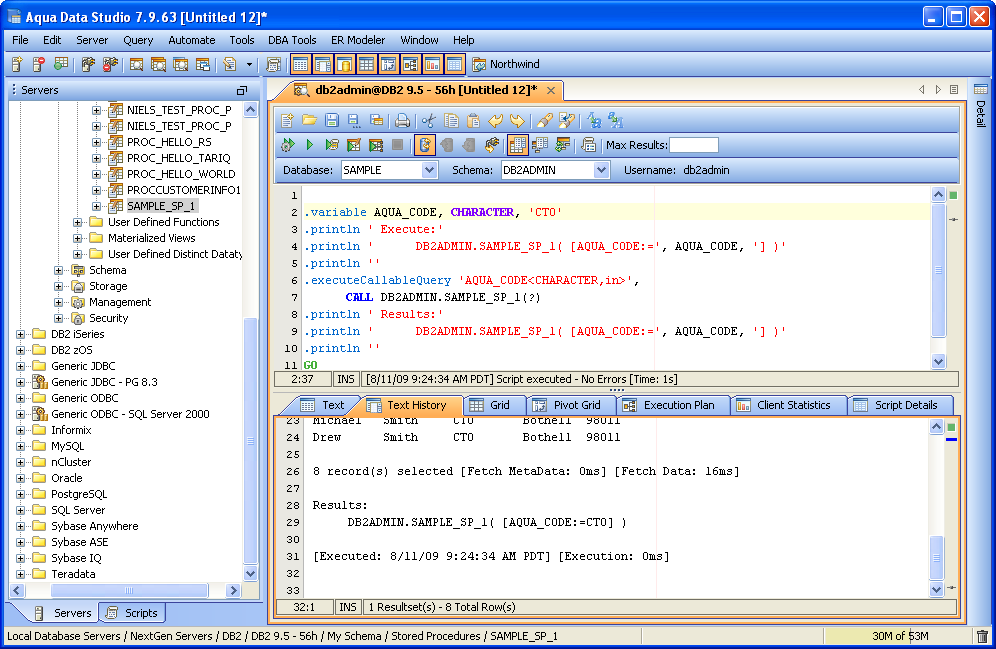 Creating and Executing a Sample Stored Procedure in Aqua Data Studio (DB2 UDB)