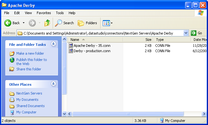 All database and ssh server connection configurations are stored in the \.datastudio\connections directory and sub-directories, with a connection file for each server in the appropriate directory. Users may exchange and share server connections by transferring individual files for each server.