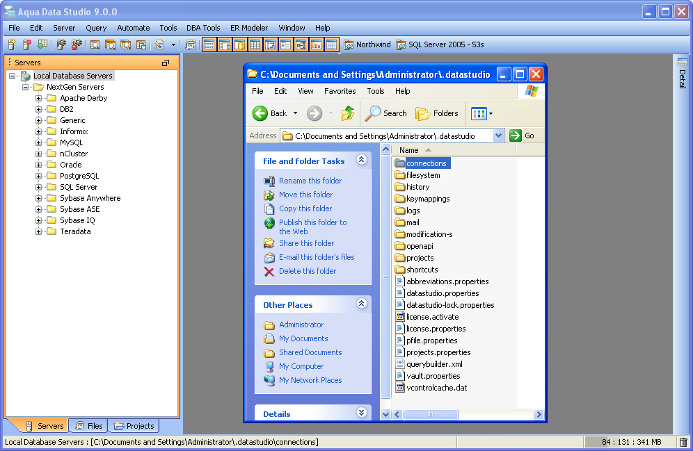 If you've suddenly lost all of your registered servers, it's possible that an environment variable for your USERPROFILE changed recently. To check where Aqua Data Studio is looking for your connection files, click on the Schema Browser tree node "Local Database Servers" at the very top of the Schema Browser. At the bottom left of the Main Application window the status bar will indicate the path Aqua Data Studio is currently using for its connection files.
