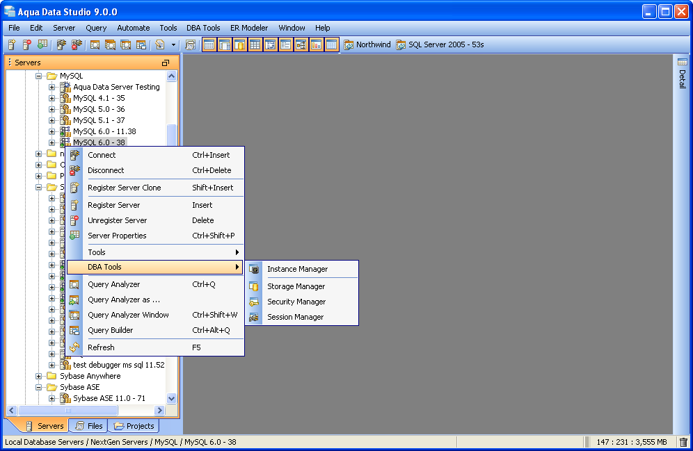 MySQL Database Administration (DBA) Tools - The MySQL Database Administration (DBA) Tools provide users with the tools to administer, manage and monitor all aspects of a MySQL database. The tools may be accessed from the application DBA Tools menu or from the schema browsers context sensitive popup menu. The following is a list of tools provided with a description of each tools functionality.