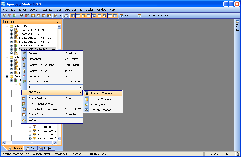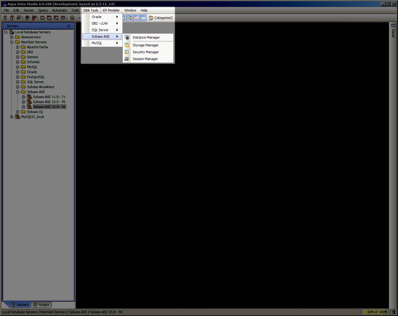 Sybase Database Administration (DBA) Tools - The Sybase Database Administration (DBA) Tools provide users with the tools to administer, manage and monitor all aspects of a Sybase database. The tools may be accessed from the application DBA Tools menu or from the schema browsers context sensitive popup menu. The following is a list of tools provided with a description of each tools functionality.