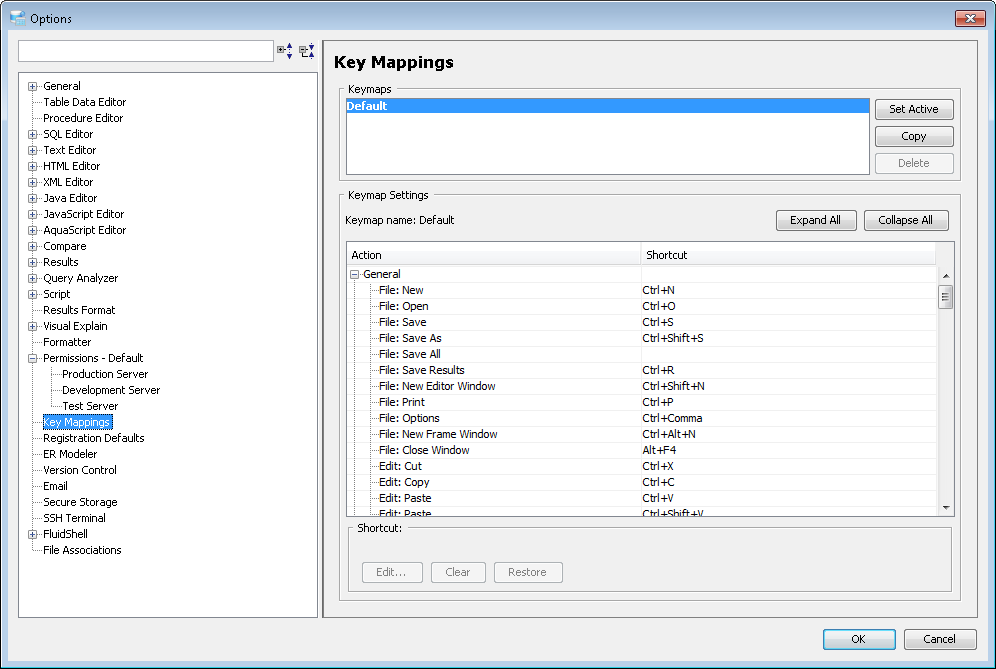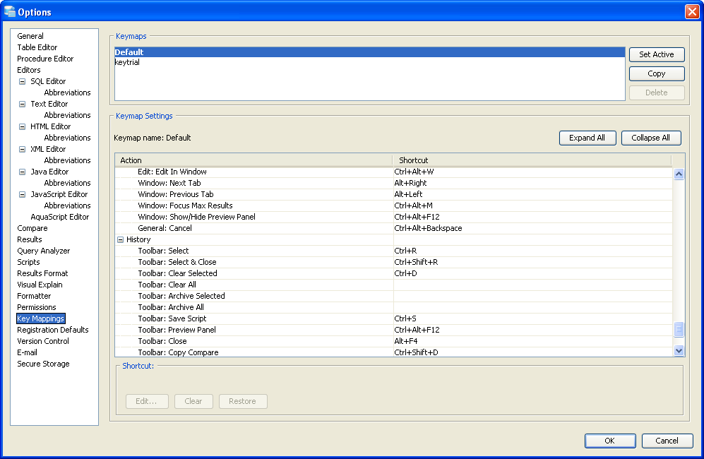 Key Mapping Options Key Mappings - The Key Mapping section allows you to configure new key mapping profiles with new key bindings. This allows you to configure any keystroke to any action.