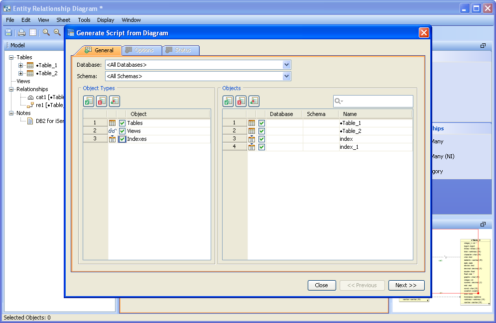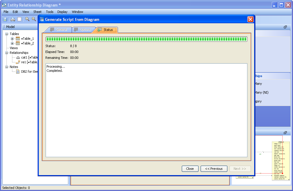 ER Models within Aqua Data Studio can be converted from any database version and type to any other database version and type. If there is a DB2 iSeries database that needs to be converted to a Microsoft SQL Server 2008 database, the Tools->Convert menu within the ER Modeler can be launched to begin the conversion process. It is possible to reverse engineer a database from DB2 iSeries into an ER Model, convert the ER Model to Microsoft SQL Server 2008 and then generate the DDL for Microsoft SQL Server 2008 to create a new database structure. Through the Tools->Convert menu, the ER Model Conversion tool allows migration from one database type to another. Migrating from a model from one database type to another involves three steps. 1. Select the ER Model and convert it to the proper database target: Open an ER Model. Select Tools->Convert Model. Select the Database Type and Database Version to convert to, and press "OK". 2. Generate the DDL (Forward Engineering) needed for creating the database from the ER Model: The recently converted model opens immediately in a new ER Modeler window. Select Tools->Generate Script from the menu bar. Select the desired objects and objects types. Select the scripts options and destination for the file (or view it in the preview tab). 3. Run the Generated DDL script on the destination server within the Query Analyzer: Once the DDL script is completed, launch a query analyzer from the Main Application Menu Bar while using the appropriate connection. The target database must exist before the script is executed. A database can be created with commands in the Query Analyzer or through a right click in the Schema Browser on the appropriate server connection. For more on creating databases using Aqua Data Studio's GUI Tools in the Schema Browser, see "Creating Databases." Run the script in the Query Analyzer by dragging it into the window, or selecting "Open File" from the Query Analyzer Toolbar. Execute the script. The database structure will be created based on the generated script from the ER Model.