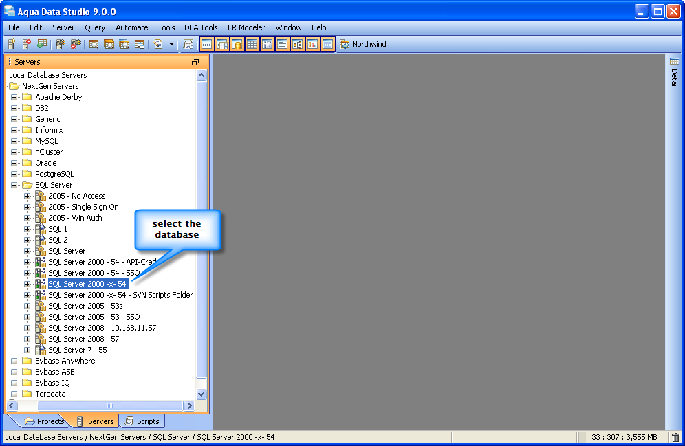 Once you have installed Aqua Data Studio you will need to register your servers before you get started. Server Registrations are created, edited, grouped, connected to and disconnected from most easily through the Schema Browser.