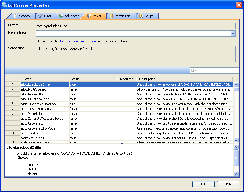 Edit the Drivers Properties to use Driver Parameters in Aqua Data Studio: