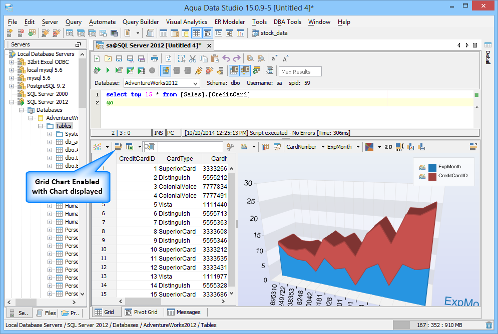 Tip 2 : You can enable Charting Tool in the Query Analyzer and get a graphical representation of your data. Pivot Grids (Pivot Tables) are also available