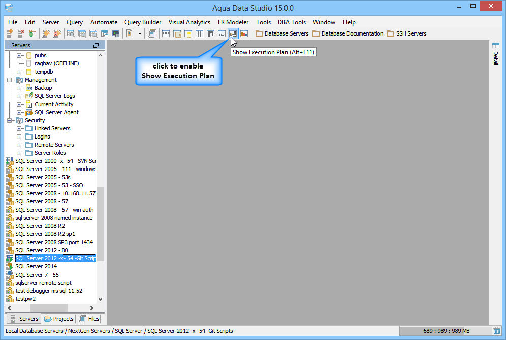 Tip 3 : You can enable Execution Plans in Aqua Data Studio which offers insight into the execution of SQL Statements and helps the user isolate potential performance bottlenecks