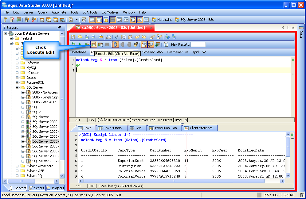 Tip 5: With Execute Edit feature in Aqua Data Studio you can quickly edit data from a table