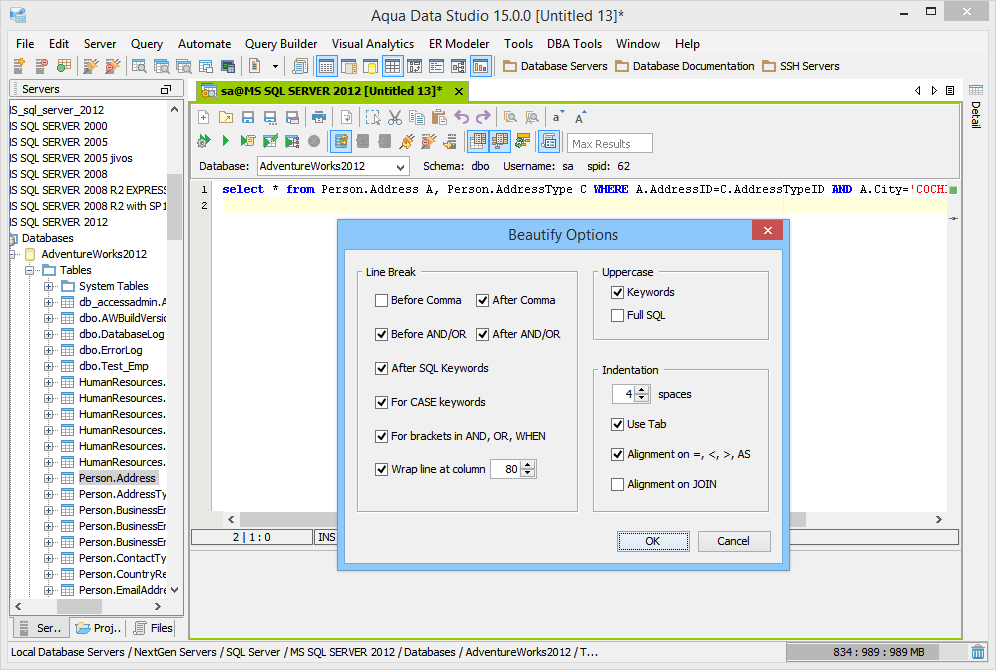 Using the Keyboard combination "CTRL+B", you may quickly Format your SQL Query |