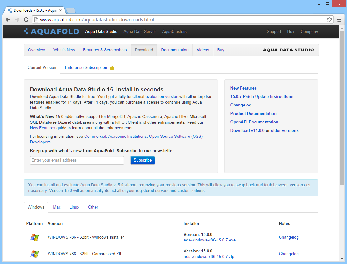 Downloading the installer - The first step is to download the Windows Installer from http://www.aquafold.com/downloads.html