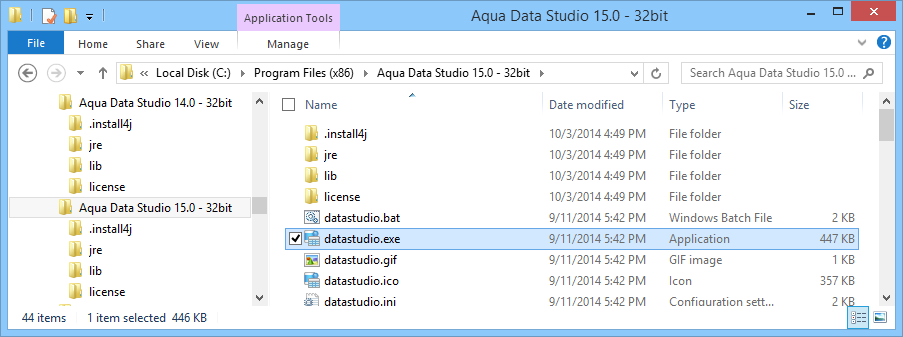 To launch Aqua Data Studio from the directory it has been extracted to, double click on datastudio.exe,