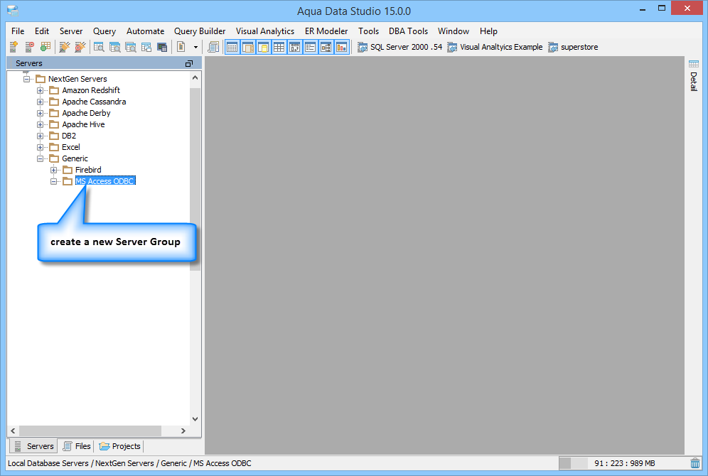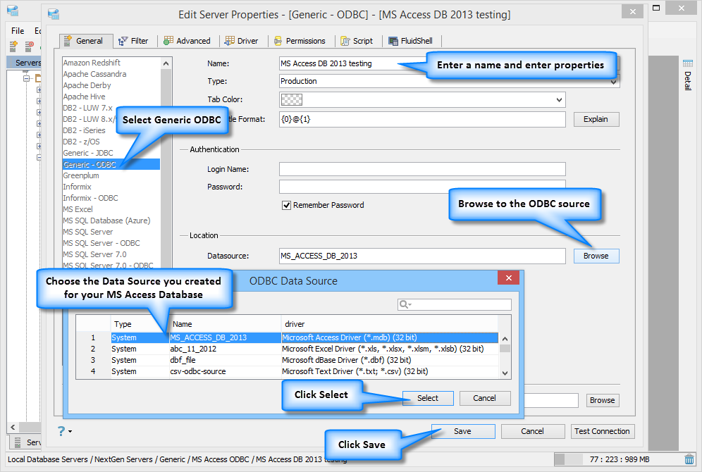 To connect to a Microsoft Access Database using Aqua Data Studio Generic ODBC: