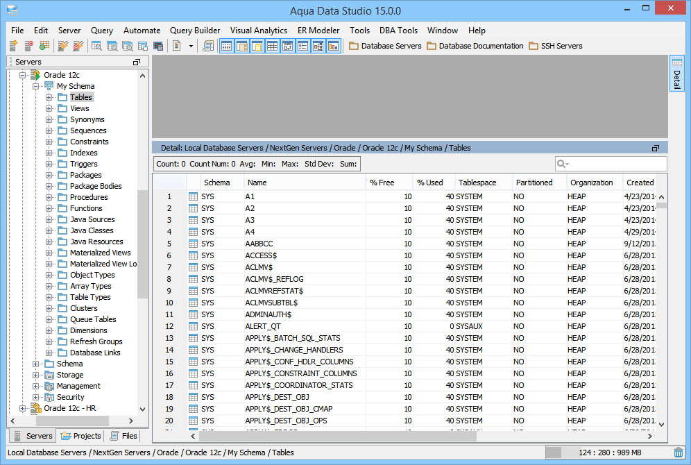 The Details View allows users to see the details of an object from the schema browser or files browser in a dockable window.