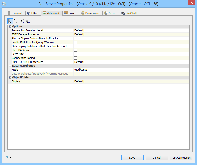 Edit the Server Properties to use Advanced Properties in Aqua Data Studio: