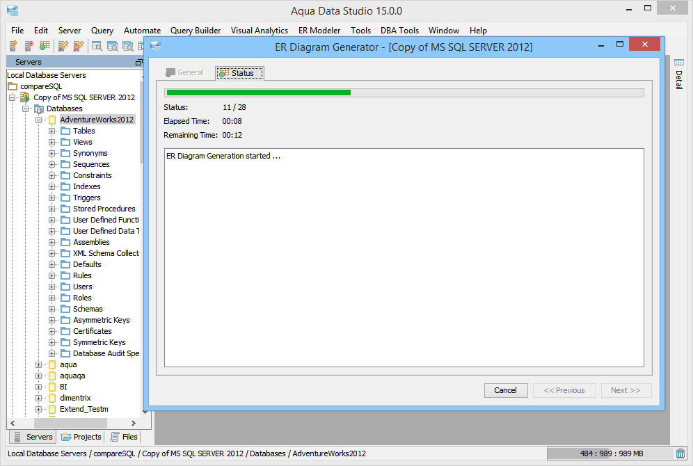 The Entity Relationship (ER) Diagram Generator helps users achieve a better understanding of their database schema by displaying the structure in a graphical format. The ER Diagram Generator uses the fully-featured Entity Relationship (ER) Modeler to create saveable, editable and exportable .xed diagrams that can be shared as part of a version control repository. See the full documentation on the Entity Relationship Modeler here for more on how to forward and reverse engineer database, migrate database and export for ERWin and Visio. Below are instructions on how to launch the ER Diagram Generator from the Main Appliction Menubar and the Schema Browser. 1. Launch the ER Diagram Generator dialog by Selecting ER Modeler->Generate from the Menu Bar or Selecting Tools->ER Diagram Generator from the right-click pop-up menu on a database object in the Schema Browser. 2. In the ER Diagram Generator dialog select a Database and Schema (or All Schemas). In the left panel, select one or more of the Object Types to be diagramed (Tables, Views or Both). Click the green check button to select all and the red X button to deselect all. All objects matching the selected schema and object types will appear in the right panel. Select one or more objects to be diagramed 3. Click Next to generate the diagram. The Status Tab will display with information on the diagram's creation including elapsed time, time remaining and number of objects diagrammed. Once the diagram is generated, the ER Modeler will open and display the new diagram. All of the table entity objects created can be edited, repositioned and exported. See the ER Modeler section for the full details on its capabilities and features. |