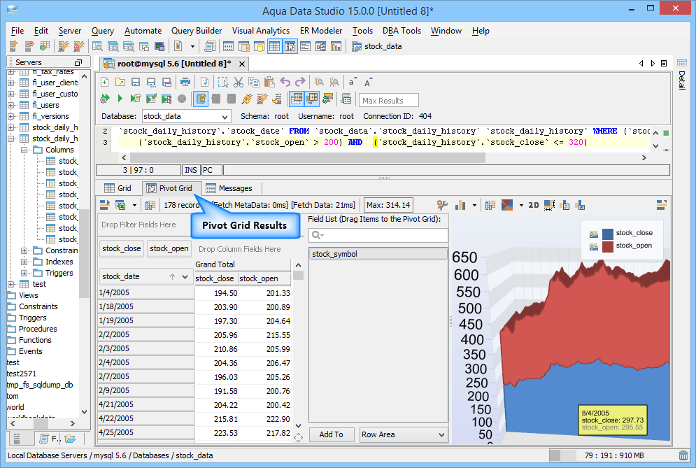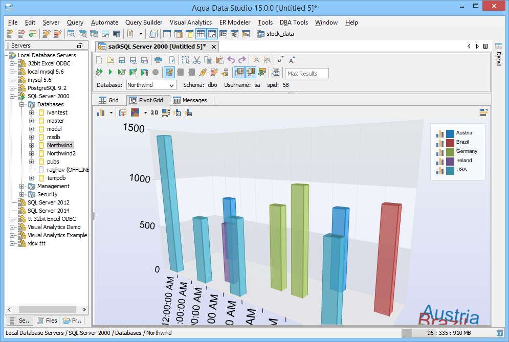 GRID and PIVOT GRID with charts in Aqua Data Studio
