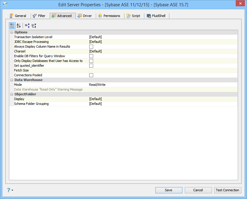 Edit the Server Properties to use Advanced Properties in Aqua Data Studio: