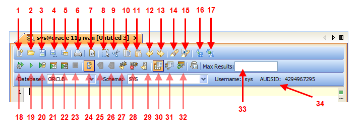 Aqua Data Studio’s Query Analyzer toolbar provides quick access to the query editing and execution functions.