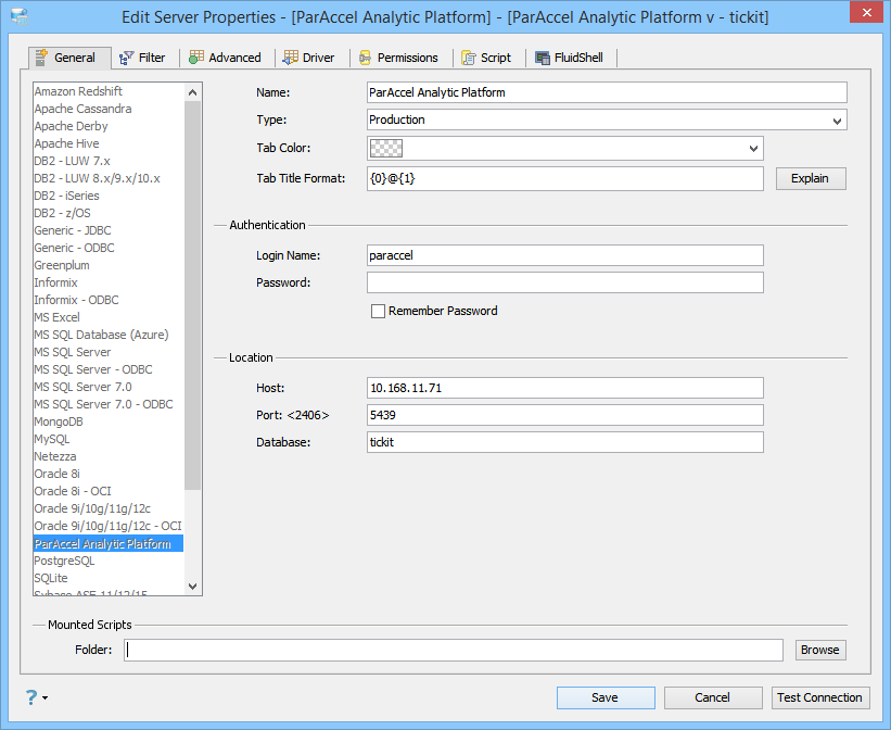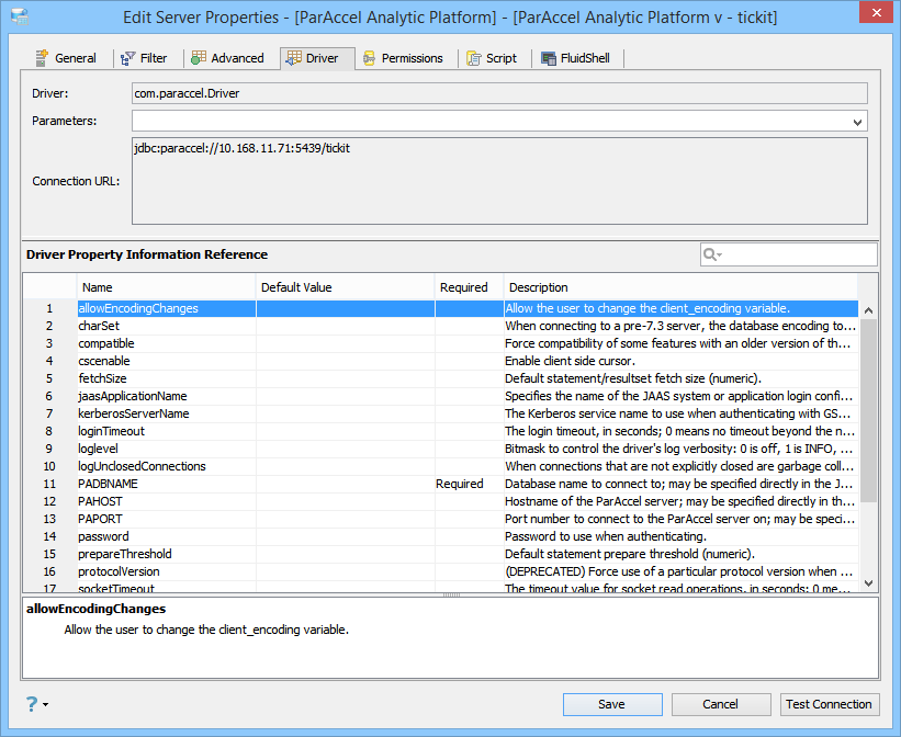 Edit the Drivers Properties to use Driver Parameters in Aqua Data Studio:
