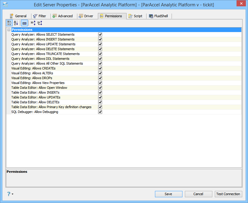 Edit the Permissions in Server Properties in Aqua Data Studio: