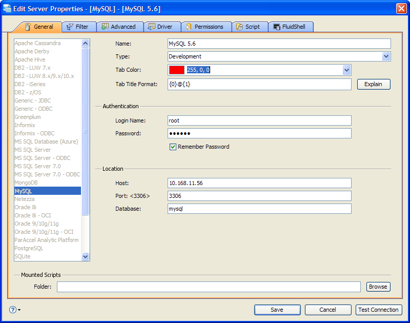 Edit Shell Scripts in Server Properties in Aqua Data Studio: