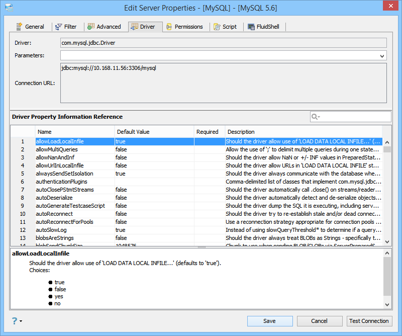 Edit the Drivers Properties to use Driver Parameters in Aqua Data Studio: