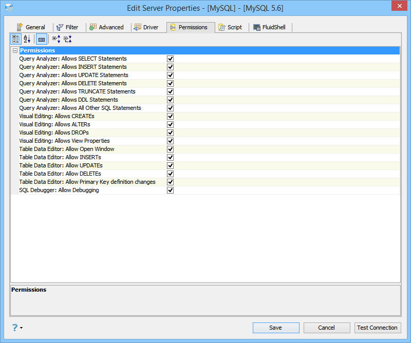 Edit the Permissions in Server Properties in Aqua Data Studio: