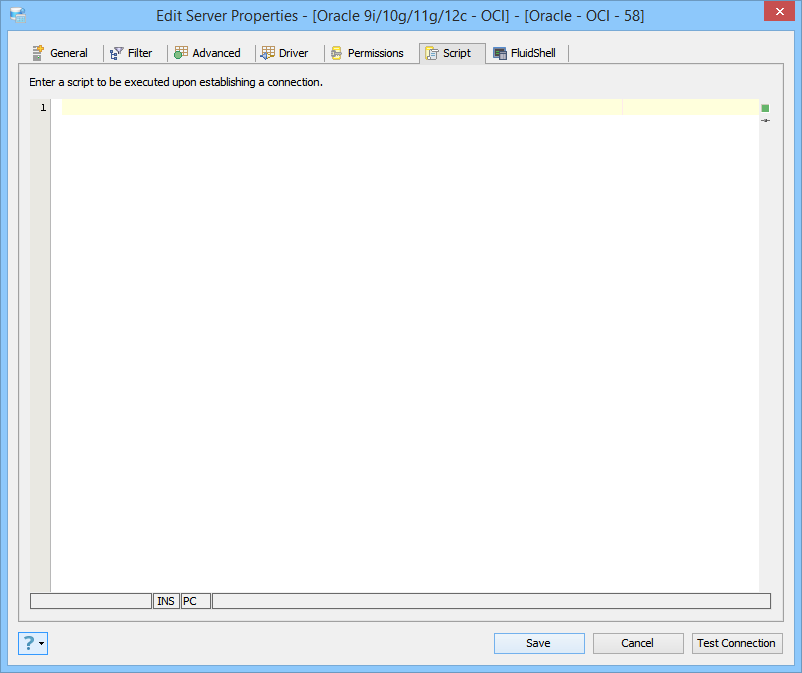 Edit Scripts in Server Properties in Aqua Data Studio: